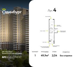 Предлагаем вашему вниманию уютную 1-комнатную квартиру общей площадью 49,9 кв.м на 2 этаже в новой очереди строительства ЖК "Одинбург". Этот обновленный проект от компании AFI Development включает в себя актуальные архитектурные решения и функциональные планировки. Для всех действует предложение от застройщика Назови свою скидку, подробности акции уточняйте у менеджеров отдела продаж.