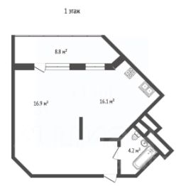 1 этаж: прихожая с выходом в подъезд, прихожая, кухня, гостиная, длинная лоджия, санузел с сауной.