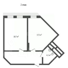 2 этаж: прихожая с выходом в подъезд, 2 просторные комнаты, санузел.