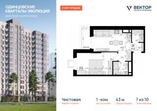 Продается 1-комн. кв-ра площадью 43 кв.м на 7 этаже 10 этажного дома в ЖК "Одинцовские кварталы Эволюция" от Группа компаний Вектор. Жилой комплекс "Одинцовские кварталы Эволюция" расположен в окружении живописного леса и исторических стародачных поселков, создавая атмосферу загородного уюта и культурной ценности. Этот район всегда считался престижным: здесь жили ученые, писатели и деятели искусства, что придает комплексу особый характер.