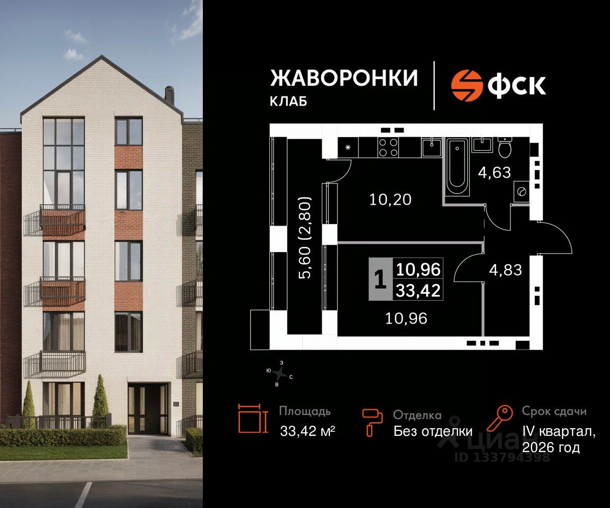 Продаётся 1-к квартира 37 общей площадью 33.42 кв.м на 4-м этаже 4 этажного дома. Без отделки.