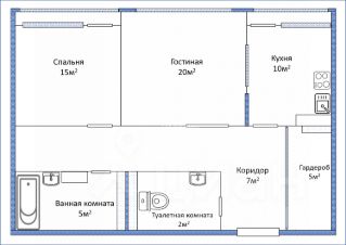 Просторная спальня (15 м²) — это место не только для большой кровати и гардероба, но и для тишины, покоя и уединения родителей. А выход на собственную лоджию подарит возможность обустроить там компактный рабочий уголок.