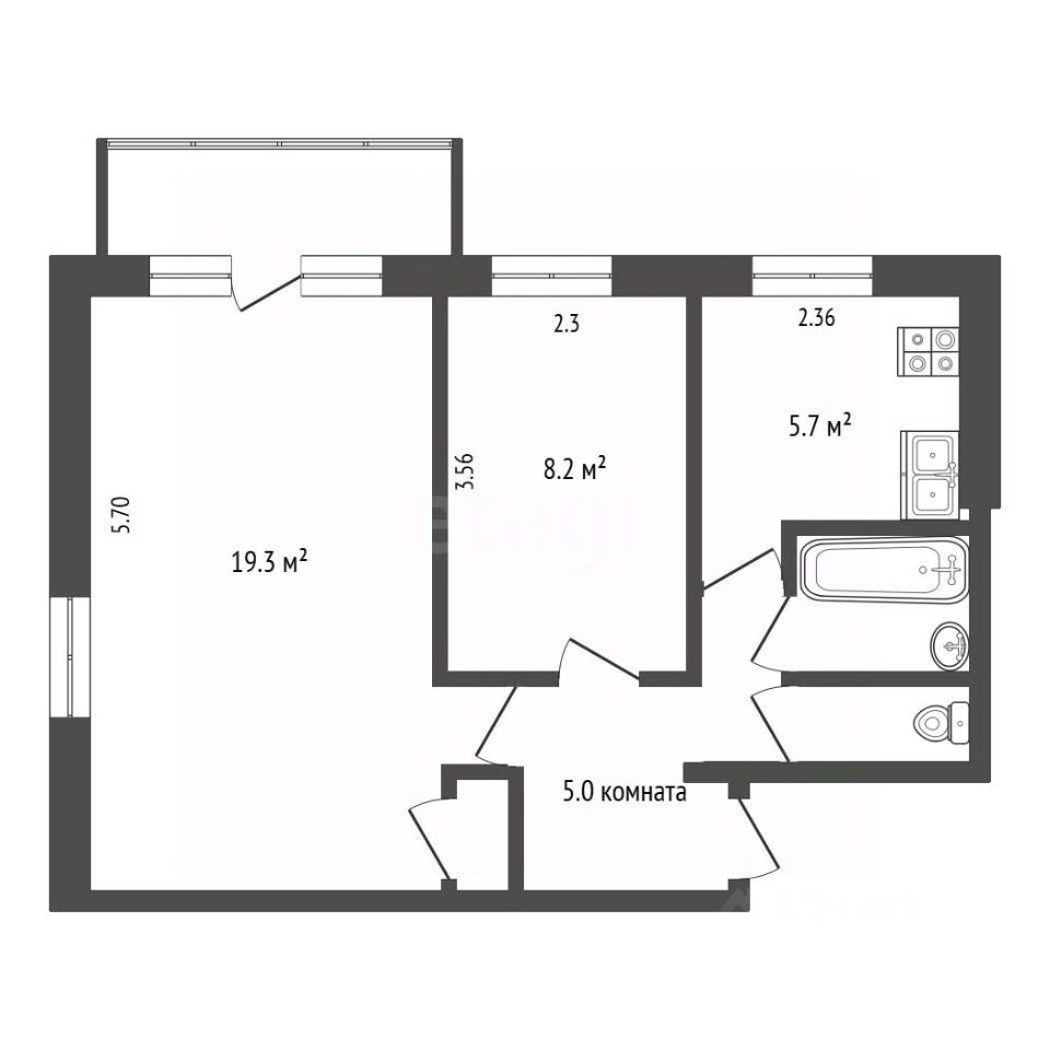 - общая площадь 44,6 м2: 2 отдельные комнаты: большая гостиная и спальня, раздельный санузел, балкон;