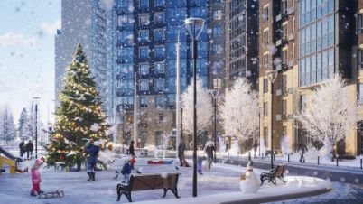 Во дворах обустраиваются игровые комплексы с безопасным покрытием, спортивные площадки, зоны отдыха для взрослых и площадки для занятий йогой. Озеленение территории включает деревья, кустарники и газоны. На первых этажах домов предусмотрены коммерческие помещения, где смогут открыться магазины, сервисные службы, кафе, фитнес-студии и салоны красоты.