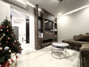 К ремонту, мебельному и техническому оснащению в квартире был применён основательный подход: трендовые световые линии, мебель по индивидуальному заказу, диван в гостиной и кровать в спальне от фирмы LeHome Interiors (в кровати подъемный механизм с большим местом для хранения). Сантехника и мебель в санузлах от Jacob Delafont. Электрическая САУНА с финской печью