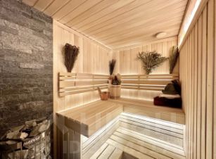 Harvia с натуральным камнем жадеит (печь регулируется удаленно через панель управления в ванной), солевое пано из гималайской розовой соли, экологические материалы обивки из Абаша. Большая ГАРДЕРОБНАЯ комната с предусмотренными местами для чемоданов, коробок и габаритных предметов, а также специальными ячейками для галстуков/ремней. Системы хранения Mr. Doors. По всей квартире современные широкоформатные телевизоры последних моделей Samsung (4 шт.) с саундбарами, сабвуферами и объемным звуком, скоростной Wi-Fi. В гостиной дизайнерский электронный камин Dimplex топовой модели.