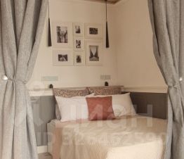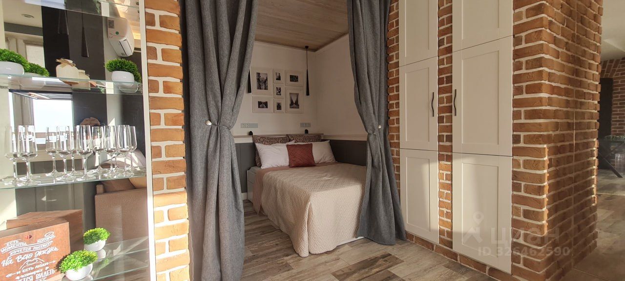 * Спальня-альков: приватная зона сна скрыта за плотными шторами, создавая ощущение отдельной комнаты.