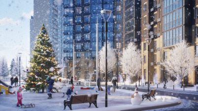 Во дворах обустраиваются игровые комплексы с безопасным покрытием, спортивные площадки, зоны отдыха для взрослых и площадки для занятий йогой. Озеленение территории включает деревья, кустарники и газоны. На первых этажах домов предусмотрены коммерческие помещения, где смогут открыться магазины, сервисные службы, кафе, фитнес-студии и салоны красоты.