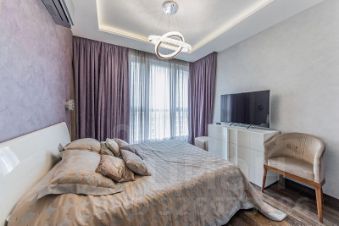 Квартира полностью укомплектована всей необходимой мебелью и бытовой техникой премиальных брендов.