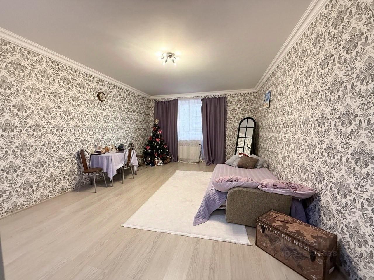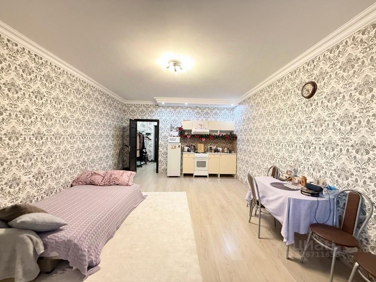 Планировка: просторная кухня-гостиная с балконом, совмещенный санузел, прихожая. Вид из окон во двор.