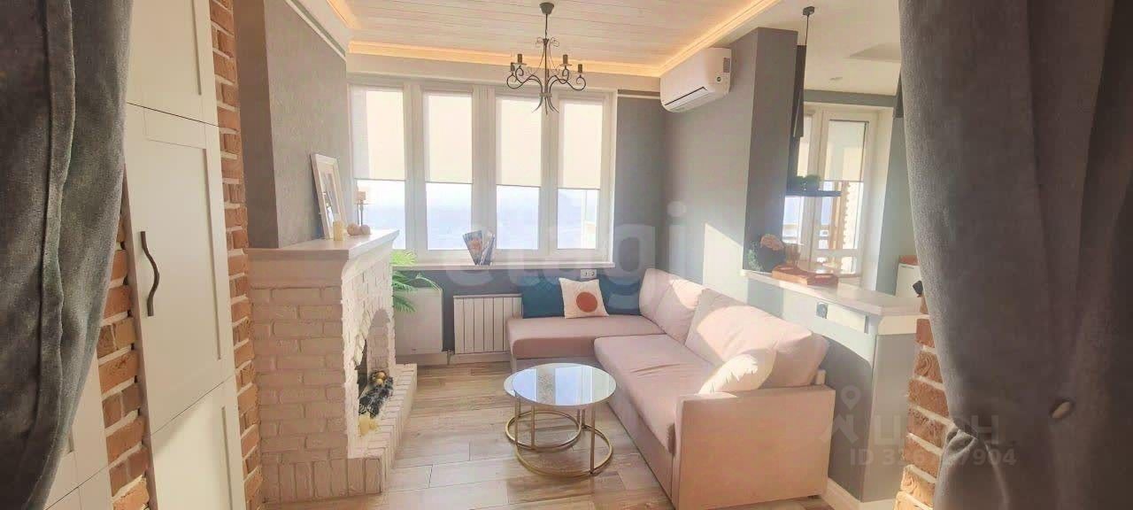 * Жилая зона: единое светлое пространство объединяет кухню и гостиную с декоративным камином. Интересная деталь — телевизор на поворотном кронштейне: его удобно смотреть с дивана, а вечером можно полностью развернуть к спальной нише, устроив киносеанс в постели.
