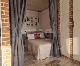 * Спальня-альков: приватная зона сна скрыта за плотными шторами, создавая ощущение отдельной комнаты.