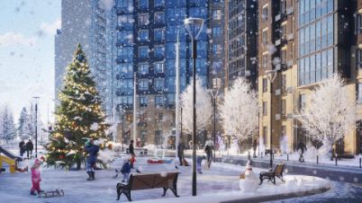 Во дворах обустраиваются игровые комплексы с безопасным покрытием, спортивные площадки, зоны отдыха для взрослых и площадки для занятий йогой. Озеленение территории включает деревья, кустарники и газоны. На первых этажах домов предусмотрены коммерческие помещения, где смогут открыться магазины, сервисные службы, кафе, фитнес-студии и салоны красоты.