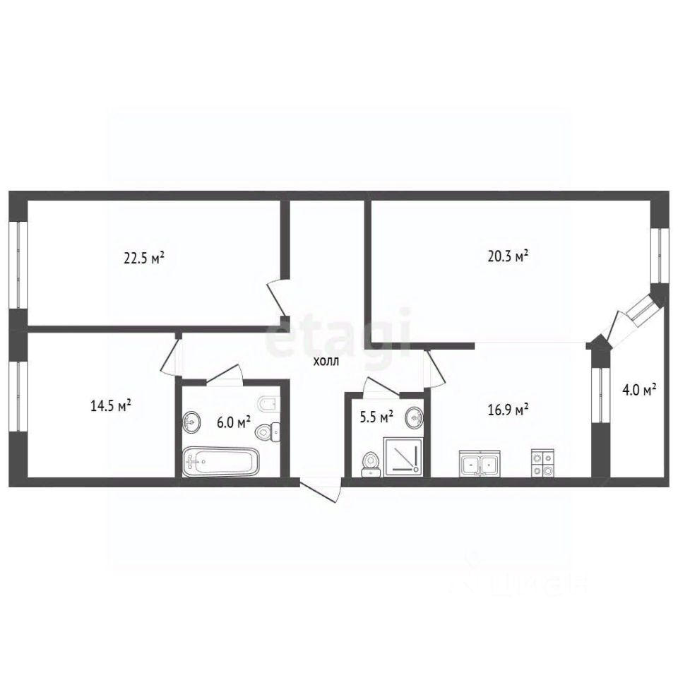Санузлы: раздельные — 5,5 м² и 6 м².