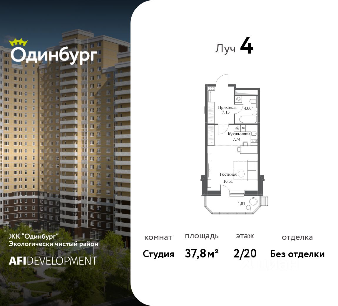Предлагаем вашему вниманию уютную студию общей площадью 37,8 кв.м на 2 этаже в новой очереди строительства ЖК "Одинбург". Этот обновленный проект от компании AFI Development включает в себя актуальные архитектурные решения и функциональные планировки. Для всех действует предложение от застройщика Назови свою скидку, подробности акции уточняйте у менеджеров отдела продаж.