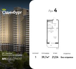 Предлагаем вашему вниманию уютную 1-комнатную квартиру общей площадью 39,7 кв.м на 21 этаже в новой очереди строительства ЖК "Одинбург". Этот обновленный проект от компании AFI Development включает в себя актуальные архитектурные решения и функциональные планировки. Для всех действует предложение от застройщика Назови свою скидку, подробности акции уточняйте у менеджеров отдела продаж.