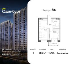 Предлагаем вашему вниманию уютную 1-комнатную квартиру общей площадью 38,2 кв.м на 15 этаже в новой очереди строительства ЖК "Одинбург". Этот обновленный проект от компании AFI Development включает в себя актуальные архитектурные решения и функциональные планировки. Для всех действует предложение от застройщика Назови свою скидку, подробности акции уточняйте у менеджеров отдела продаж.