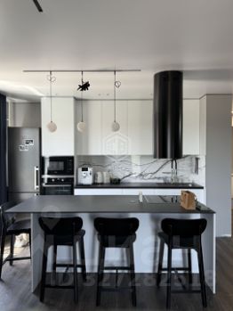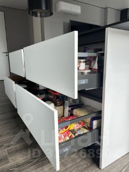 Кухонный остров премиальной техникой Neff, посудомойка, встроенная в колону духовой шкаф и микроволновка, измельчитель для пищевых отходов и большая раковина бренда OMOIKIRI, система фильтрации воды с обратным осмосом и пр.