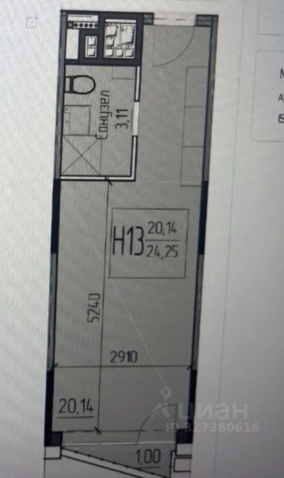 Общая площадь 24,25