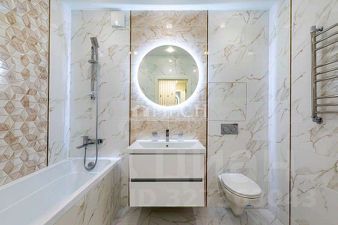 Просторная кухня - гостиная оборудована кухонным гарнитуром со всей необходимой встроенной современной бытовой техникой (варочная поверхность, вытяжка, духовой шкаф, микроволновая печь, посудомоечная машина, холодильник). Несколько сценариев освещения, нейтральная светлая палитра, зеркальная вместительная гардеробная система, Smart ТV диагональ 55, ТV диагональ 40 делают квартиру уютной и располагающей к отдыху.