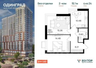 Продается уютная 2-комнатная квартира 52,1 м² в " ЖК Одинград Квартал Семейный"