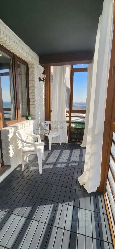Балкон застеклен и ориентирован на солнечную сторону и отлично подходит под рабочую зону, зону отдыха или зимний сад.