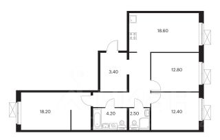 * ЕВРо трешка: 3 раздельные комнаты + кухня 18, 6 м + 2 сан. узла
