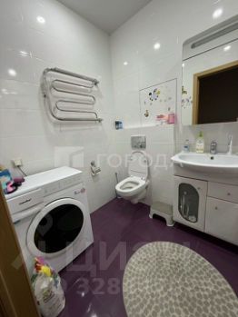 Санузел совмещенный, выполнен в светлых тонах с качественной сантехникой.