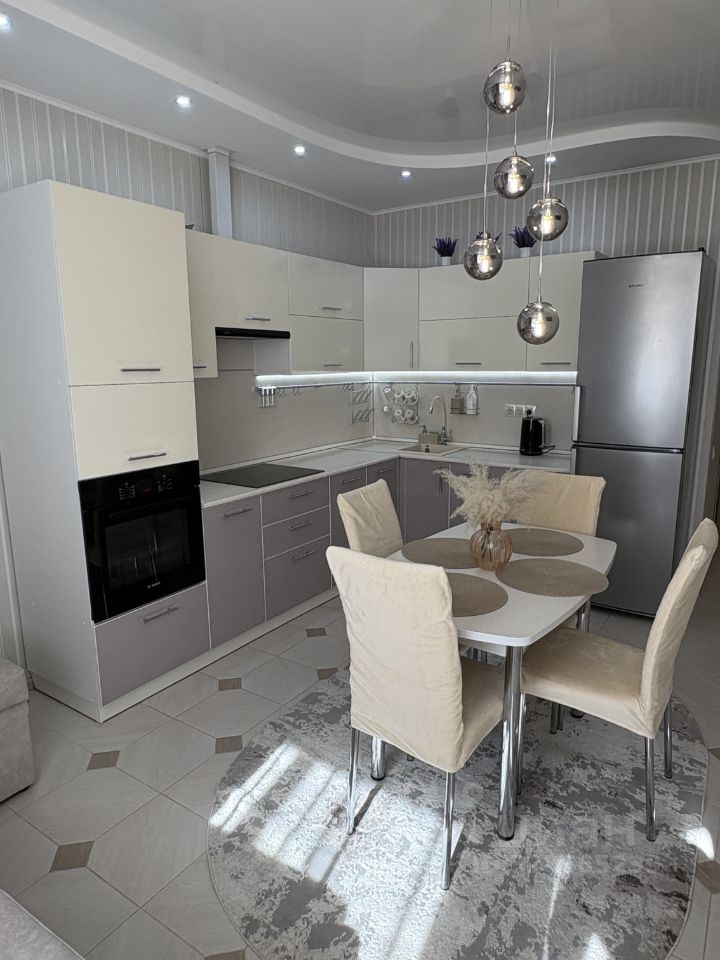 В квартире сделан качественный евроремонт: современные отделочные материалы, система тёплый пол в прихожей,кухне,ванной и лоджии,стильная мебель и актуальная бытовая техника, поэтому можно сразу заехать и жить с комфортом. Планировка продумана до мелочей, совмещенный санузел выполнен в современном стиле. В квартире есть лоджия, выход из кухни,где можно расположиться с чашкой кофе или использовать под хозяйственные нужды. вид из окна на фонтан.