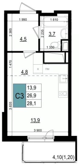 Продаётся студия в строящемся доме (Дом 1), срок сдачи: III-кв. 2026, общей площадью 28.1 кв.м., на 21 этаже. Новый жилой дом от застройщика "Атлантис Скай Сити" расположен по адресу Московская область, Одинцовский район, г. Одинцово, микрорайон 6 - 6А