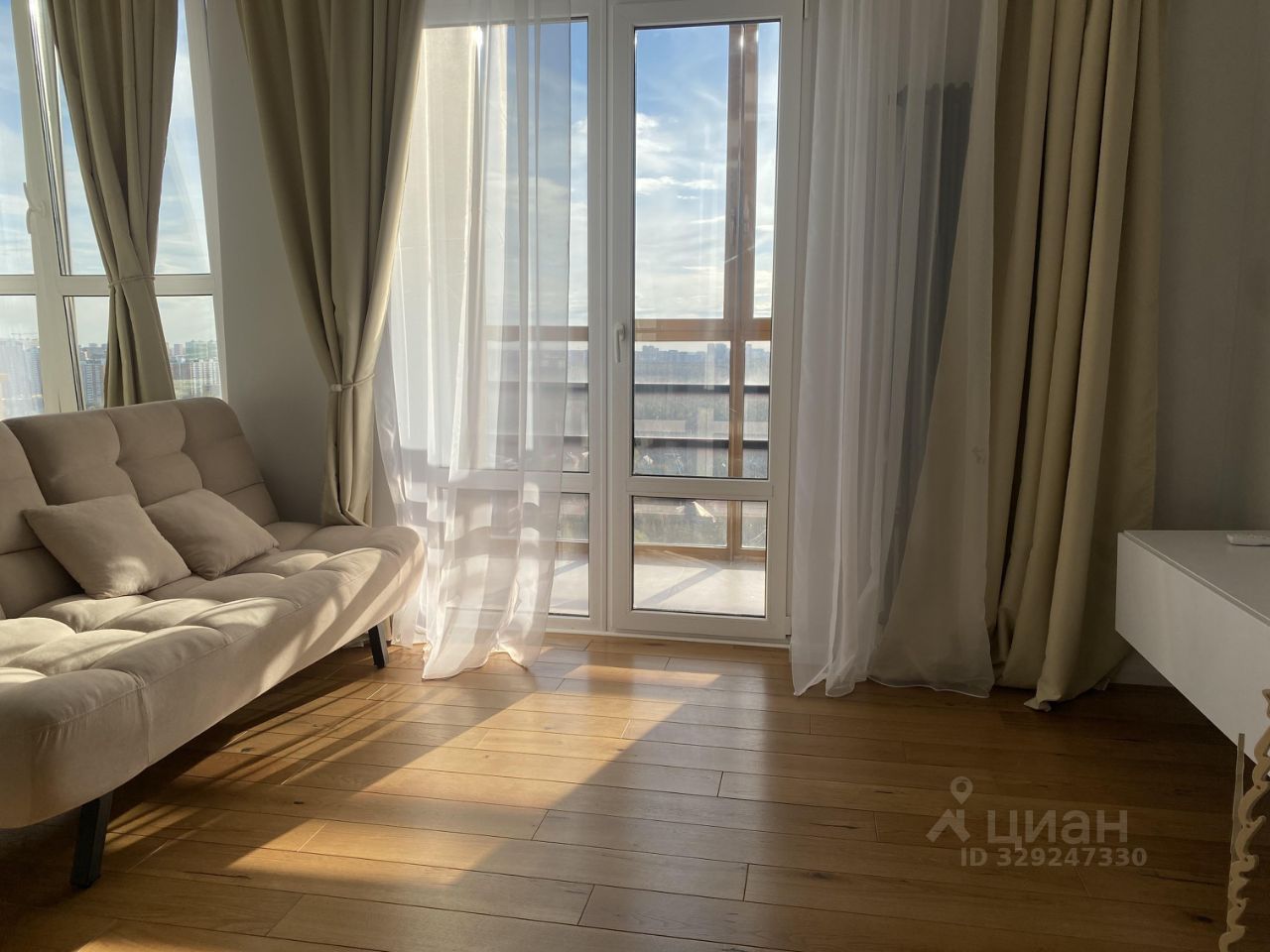 Большое окно с низким подоконником (24 этаж и выше), панорамный вход на лоджию (без уступа). Подоконник - шпон натуральный дуб. Просторная лоджия (5,4 м2) с панорамным остеклением. Вертикальный трубчатый радиатор отопления у входа на лоджию. Установлен кондиционер.