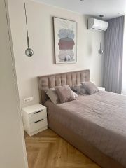 Квартира впечатляет своим стильным дизайном и продуманной планировкой. Здесь есть два совмещенный санузла, что очень удобно для семейного проживания.