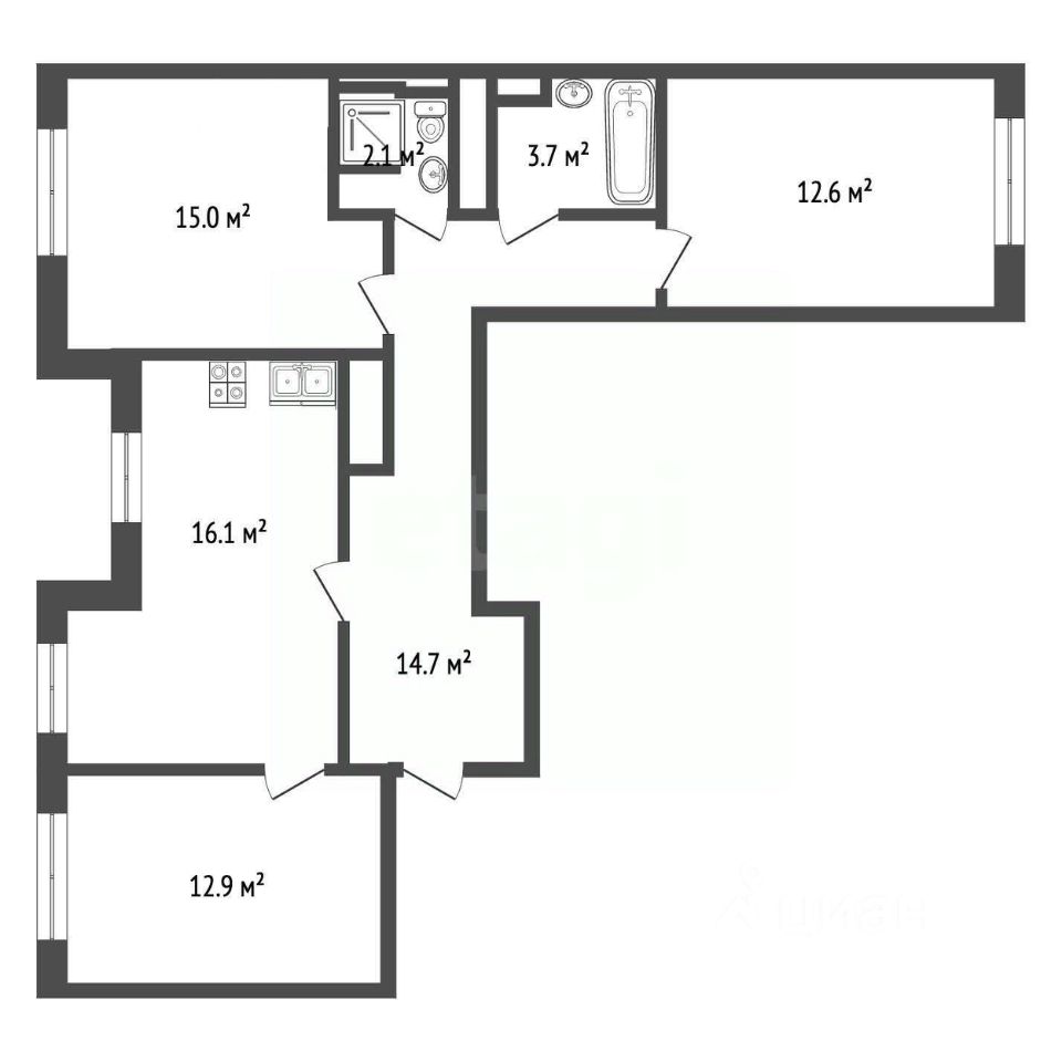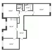 Общая площадь квартиры составляет 82 кв. м, кухня — 18 кв. м., три изолированные спальни 16/14/14 кв.м. Окна выходят как на улицу, так и во двор, что обеспечивает отличное естественное освещение в течение всего дня.