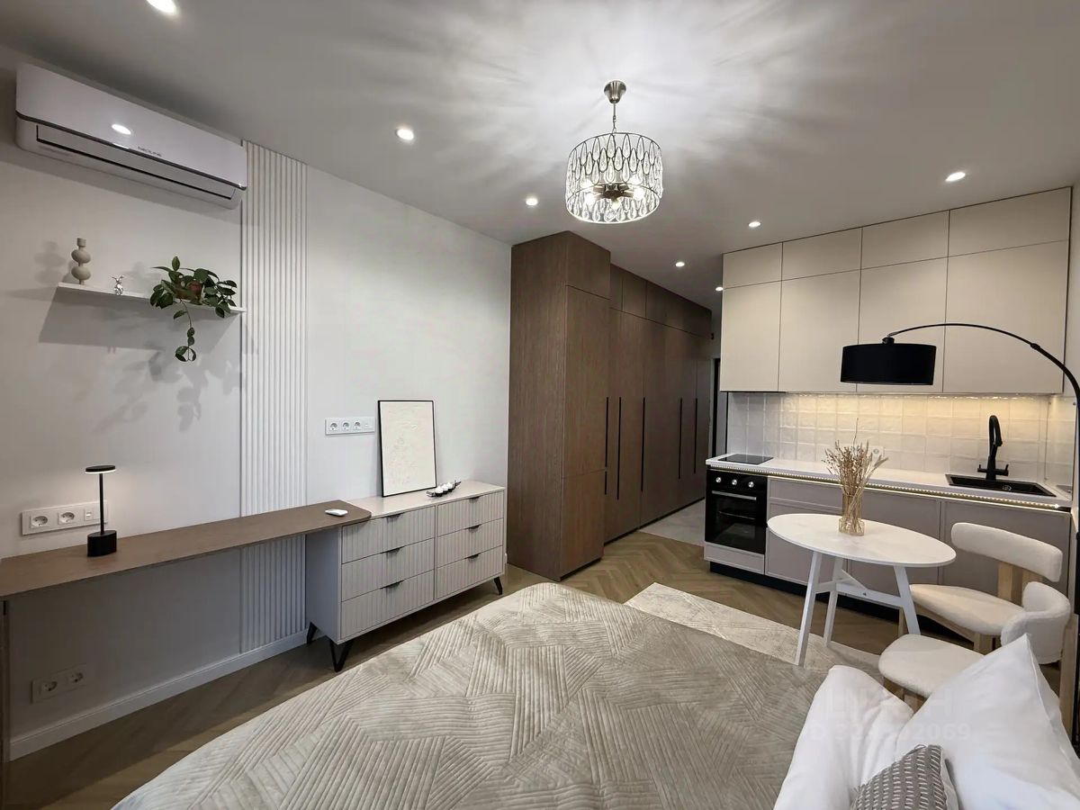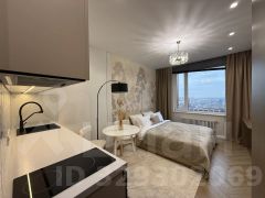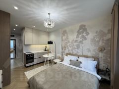 Продаётся видовая студия на 25-м этаже 25-этажного дома в самом центре Одинцово. Из окон открывается красивый вид на город. Квартира абсолютно новая — никто не жил, но при этом полностью готова к комфортному проживанию: есть вся необходимая мебель и техника. Большие окна и высокие потолки делают помещение очень светлым и просторным.
