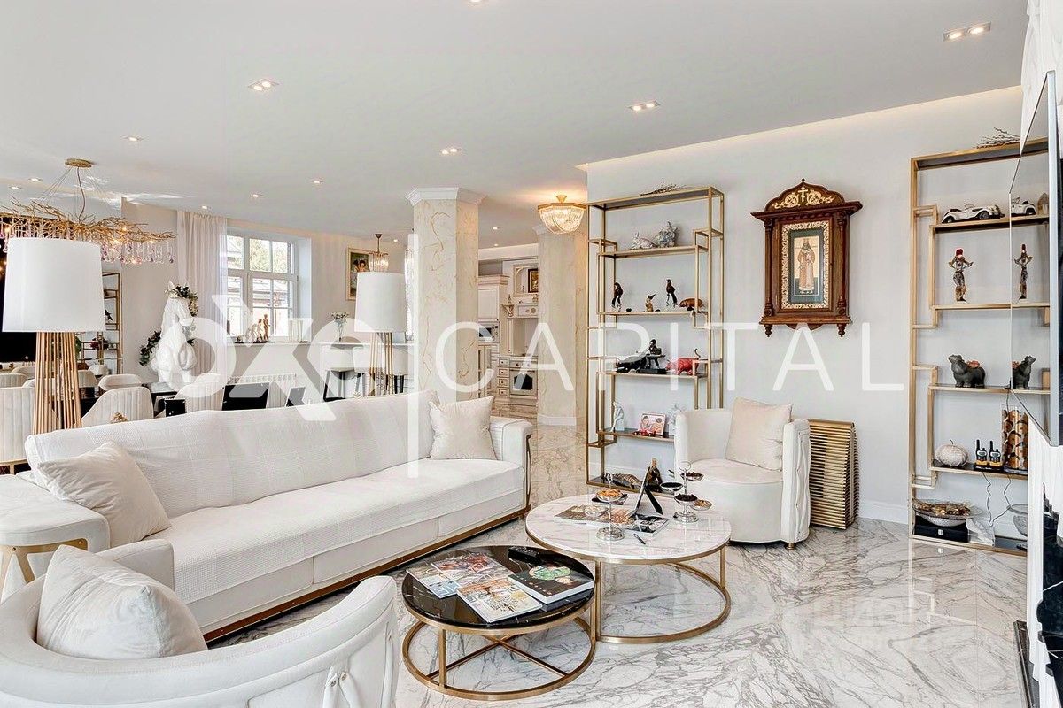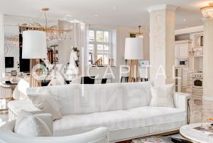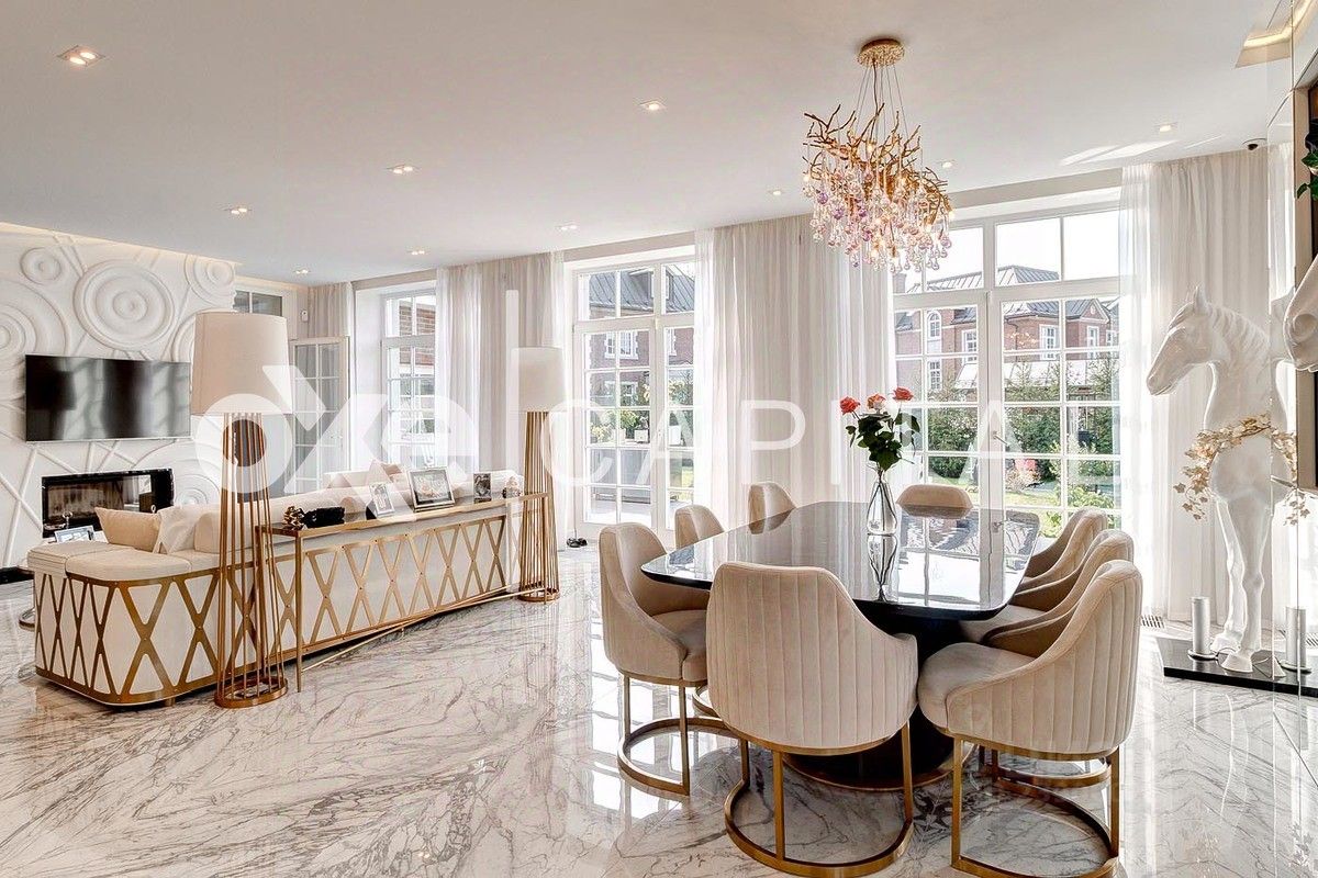 Лот d4448 Предлагается дом с отделкой "под ключ" площадью 560 кв.м, в коттеджном посёлке "Раздоры-2", Рублево-Успенское шоссе. 3 уровня. 4 спальни, кухня, столовая, гостиная с выходом на террасу, квартира для персонала с отдельным входом.