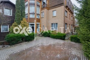 На земельном участке 10 соток отдельностоящий дом для персонала(42 кв.м), стильный ландшафтный дизайн.  1 этаж: гостиная, объединённая с обеденной зоной с панорамным остеклением; большая кухонная зона; гостевая спальня, входная группа с большой прихожей, котельная, хоз. помещения.  2 этаж: спальня хозяев с с/у и гардеробной; две детские комнаты; холл с зоной отдыха и библиотекой, с/у, в отдельной части этажа рабочая зона с постирочной. 3 этаж: спальня с балконом и хорошим видом; рабочий кабинет; большая ванная комната. Гараж: парковка