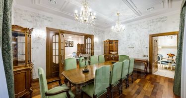 1 этаж: прихожая, гардеробная, холл, кухня, столовая, гостиная с камином, гостевой с/у, сауна, комната отдыха, джакузи, с/у, душ, кабинет, постирочная, котельная