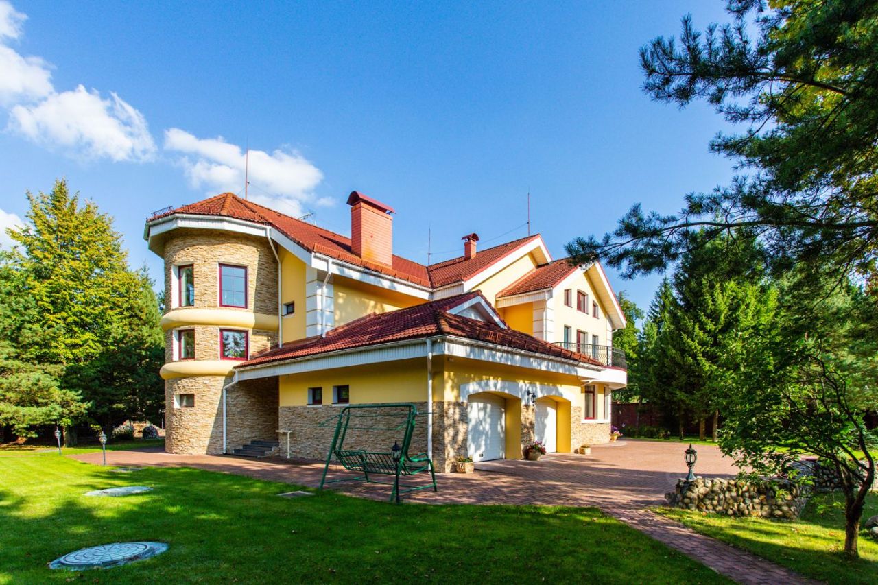 Красивый дом, в классическом стиле, 628 кв.м, полностью готовый к проживанию. Фундамент сваи, ростверк, плита. Стены - кирпич с утеплением - базальтовая вата. Крыша - натуральная черепица Braas. Отопление 2 котла Wiessmann, погода-зависимая автоматика, теплые полы. В доме пожарно-охранная сигнализация, приточно- вытяжная вентиляция, система обогрева желобов. Возможность подключения видеонаблюдения (периметр и территория участка). 1 этаж большое единое пространство 130 кв.м. (холл 40 кв.м, каминный зал 53 кв.м, столовая 22 кв.м, кухня 15 кв.м), комната отдыха с сауной и небольшим бассейном, с тренажерным залом и душевой, 2 санузла, котельная, гараж на 2 авто. 2 этаж - 4 спальни, кабинет, гардеробная комната, 3 санузла. Мансарда: свободная планировка, санузел. Лесной участок 48 соток - ИЖС (сосны, ели, кедры, липа и дубы и др.) Ландшафтный дизайн, гостевой дом из клеенного бруса 50 кв.м, удобная система для полива, несколько цветочных клумб, погреб, небольшой сад, огород на несколько грядок, рододендроны, альпийская горка, голубые ели, беседка с барбекю, строение с камином, в стиле охотничьего домика. Коммуникации: Электричество - 30кВт (380В), магистральный газ , центральный водопровод + подключенный колодец, центральная канализация, московский телефон - код 499, интернет.