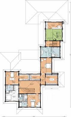 При проектировании были учтены все значимые природные факторы - стороны света, движение солнца и окружение участка. В частности, контур дома "обходит" растущие там сосны.