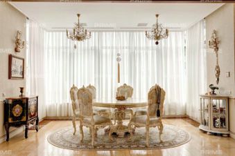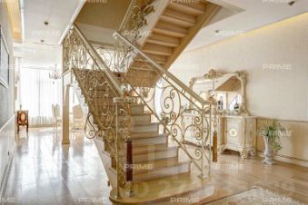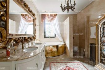 Интерьер представлен в превосходном дизайне, "под ключ", с великолепной мебелью. Пространство включает в себя 4 спальни, панорамную гостиную, каминный зал и бильярдную. Кухня-столовая гармонично дополняет общую картину. Дополнительно предусмотрена квартира для персонала. Изюминкой данного предложения являются впечатляющий СПА-комплекс с хаммамом, сауной и бассейном, гостевой домик, а также гараж на 3 машиноместа.
