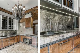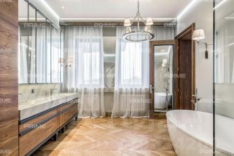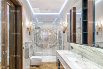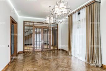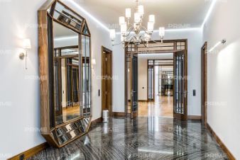 Дом оборудован эксклюзивной дизайнерской отделкой "под ключ" без мебели и состоит из двух этажей с 5 просторными спальнями. На первом этаже расположены прихожая, холл, гардеробная, кухня, столовая и уютная гостиная с камином. На втором этаже - 4 спальни, каждая с собственным санузлом и гардеробной. Витражные окна наполняют помещения светом и создают атмосферу комфорта.