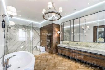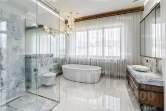 Современное домовладение площадью 550 кв.м на участке 50 соток находится в коттеджном поселке "Жуковка-21", всего в 9 км от МКАД по Рублево-Успенскому шоссе. Это идеальное место для семейного счастья и умиротворения.