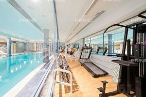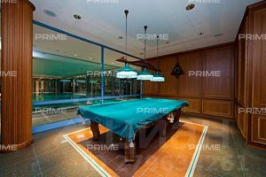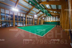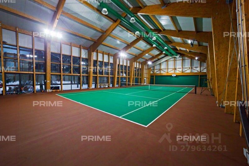 На территории участка, где построен особняк растут корабельные сосны. Выполнен ландшафтный дизайн, английская лужайка и каскад водопадов. На участке расположен отдельно стоящий гостевой дом и просторный спорткомплекс.
