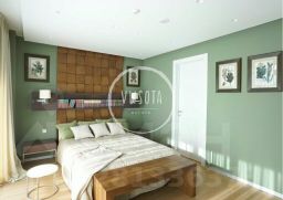 1-й этаж: холл, гардеробная, гостиная со 2-м светом, камином и выходом на террасу, столовая, кухня, 2 спальни со своими ванными комнатами, домашний кинотеатр, SPA-зона: хамам, сауна, джакузи, душевые, фитнесс зона. Блок для персонала: спальня, кухня, ванная комната, постирочная, котельная, серверная, гараж на 2 м/места.