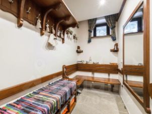 Имеется гараж на две больших машины, общей площадью 47,5 кв.м, также имеются помещения для персонала со своей кухней и санузлом.