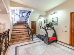 Дом оборудован системой умный дом с дистанционным управлением, укомплектован дорогой техникой от элитных производителей и мебелью по индивидуальному заказу, полностью готов к проживанию. В отделке использованы экологически чистые, дорогостоящие материалы, лучших европейских производителей. Дом построен в классическом стиле, с цокольным этажом, мансардой, несколькими балконами, на одном из которых зона отдыха и барбекю. В доме обустроен банный комплекс с сауной, хамамом, джакузи и обширной комнатой отдыха со своей кухней, каминным залом и массажным кабинетом.