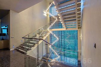 Новый просторный дом выполненный в современном стиле "хай-тек". Большие и светлые помещения, панорамное остекление создаёт неповторимое чувство пространства. В доме 5 спален, каждая со своей ванной и гардеробными комнатами. Великолепная зона отдыха включает каминный зал, бассейн с сауной и кинозал. Дом построен с учётом ландшафтных особенностей участка.