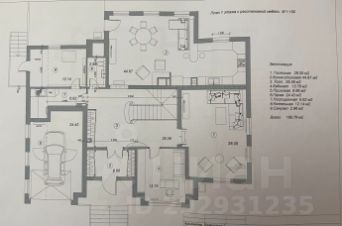 Этаж 1: Прихожая гардеробная, холл, кухня-столовая с камином и выходом на застекленную террасу, гостиная, с/у, кабинет, подсобные помещения: постирочная, котельная, кладовая