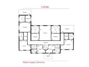 2 этаж: коридор, 3 спальни с ванной комнатой, гардеробной и выходом на балкон-террасу, 2 спальни с ванной комнатой и гардеробной, хозяйская спальня с двумя ванными комнатами и гардеробными.