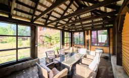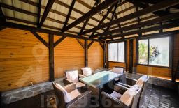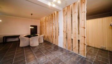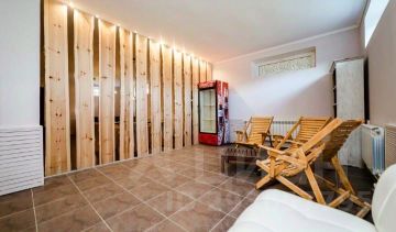 Цоколь разделен на две зоны: зона для отдыха за столом + зона при сауне